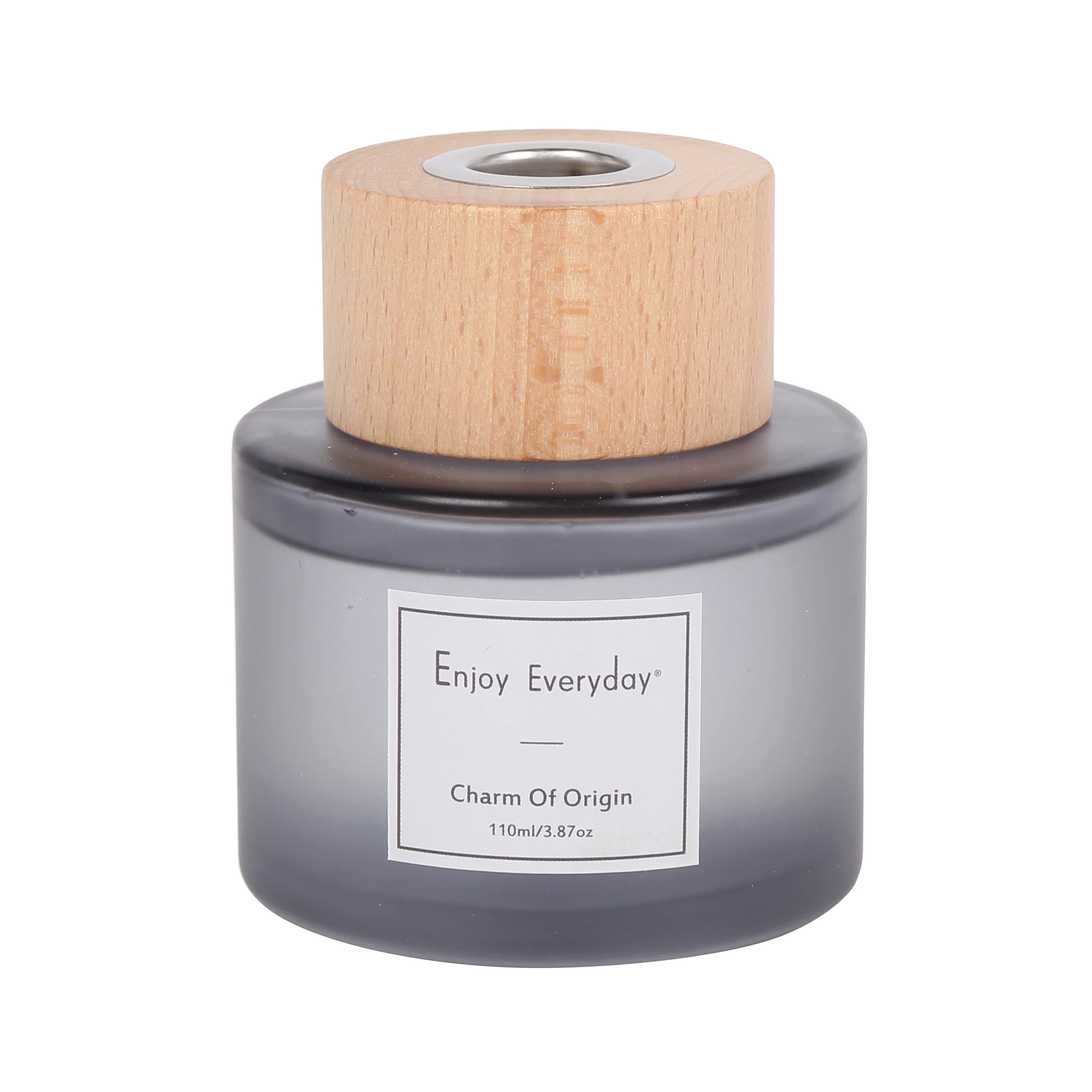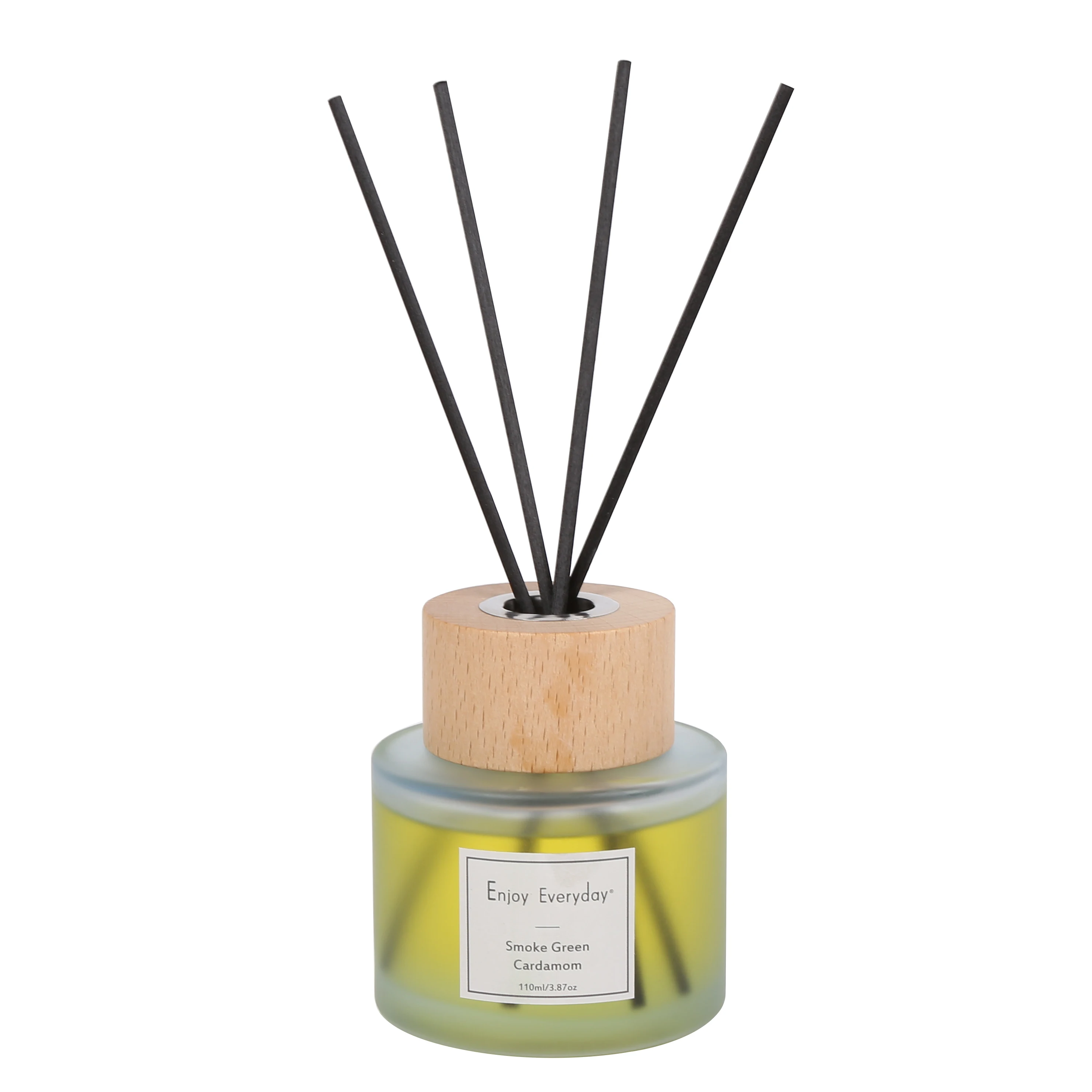 Frosted White Red Grey Black Green Sand Blast Glass Bottle Customized Label Beech Wood Lids Reed Diffuser Set